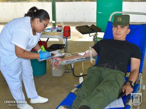 El Ejército de Nicaragua consecuente con el lema de que “Somos el Pueblo mismo uniformado trabajando en su propio beneficio”, del 4 al 6 de marzo de 2024, a través del 2 Comando Militar Regional, en coordinación con el Banco Nacional de Sangre, participó en jornada de donación voluntaria de sangre.