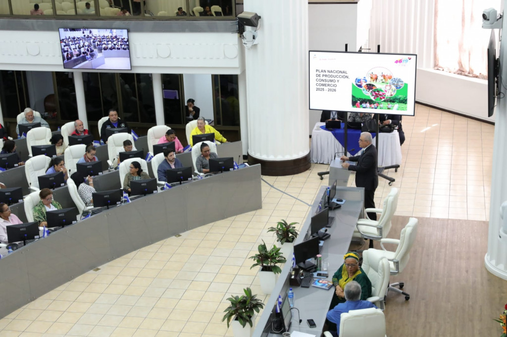 El Plenario conoció la mañana de este jueves 22 de mayo, el Plan Nacional de Producción, Consumo, Comercio, 2025-2026 del Gobierno Sandinista que consolida el modelo productivo, creativo y emprendedor de las familias productoras nicaragüenses en aras de incrementar los niveles de productividad y de competitividad del sector agropecuario.